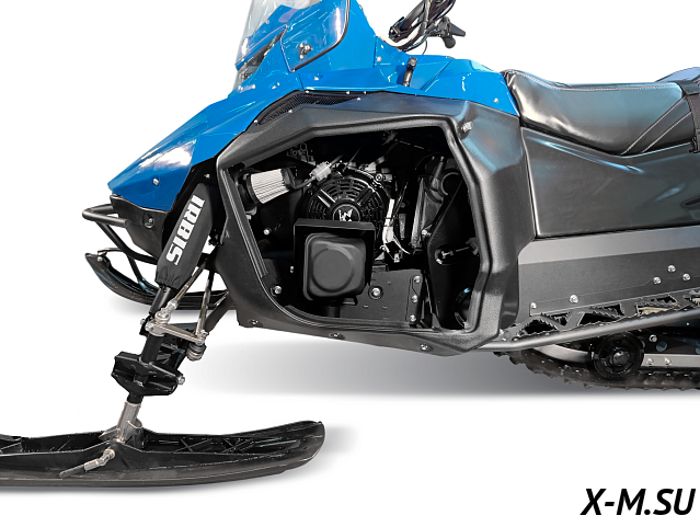 В снегоходе применяется проверенный двигатель ZONGSHEN GB620, 620куб., 22л.с., с балансирным валом. Весь крутящий момент передается через надежный вариатор «Сафари». Во всех комплектациях применяется реверс-редуктор, индивидуально разработанный под нашу технику.